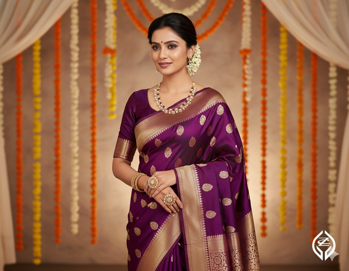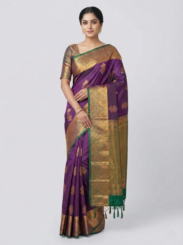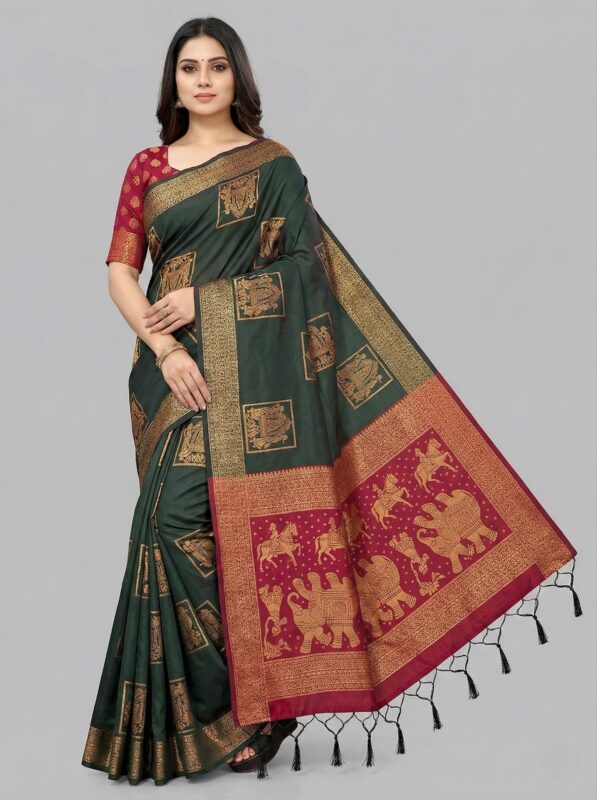 Deep Green Silk Saree with Maroon Heritage Pallu