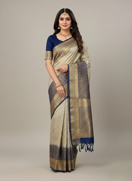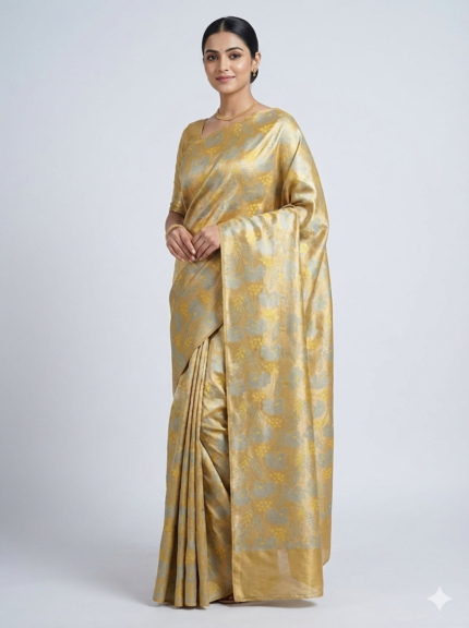 Soft Gold Silk Saree with Subtle Floral Weaves