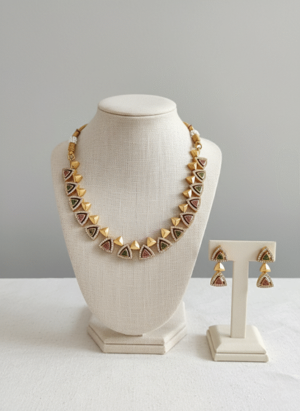 Be the first to review “Gold Circular Medallion Ruby Emerald Necklace Set” Cancel reply